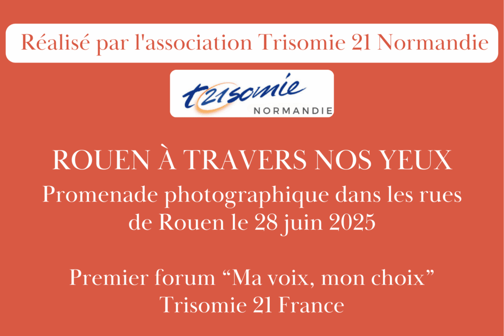 L’Association Trisomie 21 Normandie a organisé et réalisé cette promenade photographique durant le premier forum des auto-représentants intitulé « Mon choix, ma voix » le 18 Juin 2025,qui a eu lieu à Rouen, qui était porté par Trisomie 21 France.